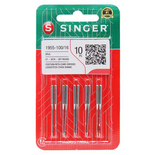 Agulha de Maquina Singer para Costura 1955 nº16 Reta Cabo Grosso env/10
