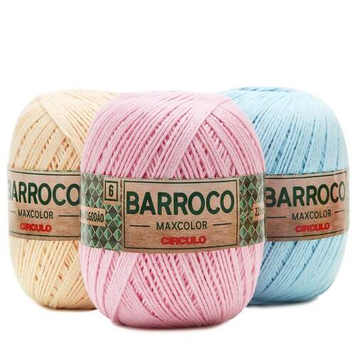 O Barbante Barroco MaxColor Candy Colors nº 6 de 200g, da Círculo, é um fio 100% algodão que se destaca por suas cores suaves em tons pastéis, inspirados em doces coloridos, conferindo delicadeza e charme às peças artesanais. Com espessura TEX 885 e 226 metros de comprimento, é ideal para projetos de crochê e tricô, como roupas, acessórios e itens de decoração. Recomenda-se o uso de agulhas de crochê entre 3,5mm e 5,0mm, ou de tricô entre 5,0mm e 6,5mm, para obter um acabamento delicado e uniforme.