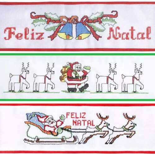 Descrição Barra Bordada Pano de Prato Natal com Viés