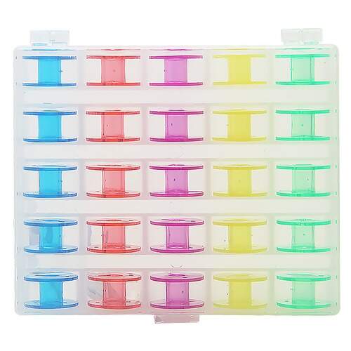 Estojo em plástico translucido, com 25 bobinas alta coloridas.
