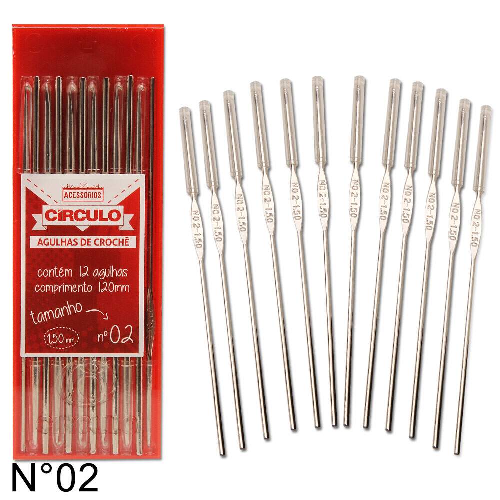 Agulha de Crochê Aço Niquelado Circulo com 12 Und nº 02 1,50mm