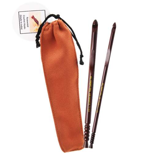 As agulhas de crochê de impressão digital de luxo feitas à mão My Two Ladies® Knitting trazem o calor, a beleza e a durabilidade do jacarandá para a sua mão, permitindo uma experiência mais agradável com menos cansaço da mão.