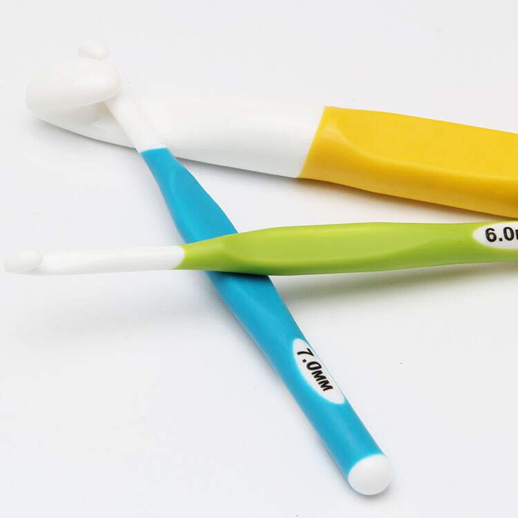 Detalhe Agulha de Crochê Plástica Grossa Colorida