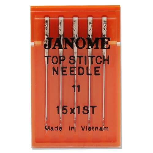 Ideal para tecidos médios e pesados costura com linhas decorativas e linha de pesponto, pois possui um furo maior e uma ranhura mais larga no corpo da agulha, que acomoda melhor as linhas mais grossas.