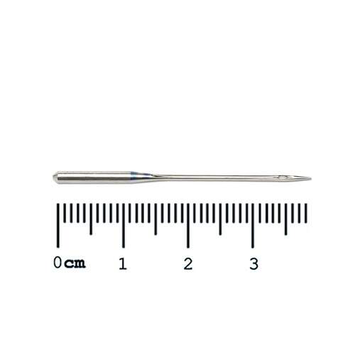 O reforço do tronco da agulha evita que esta se desvie e quebre muito ou falhe o ponto. A agulha é ideal para tecidos mais firmes como o Denim ou a Sarja.