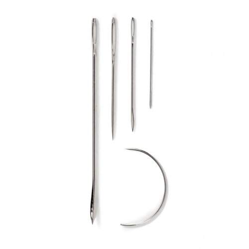 Este conjunto com cinco agulhas robustas oferece as ferramentas ideais para lidar com tecidos espessos e materiais resistentes. Ele inclui uma agulha para bolsas, uma para carpetes, uma para velas e barracas, uma para couro e uma agulha curva para estofados. Fabricadas em aço temperado, as agulhas possuem um olho grande e pontas que variam entre arredondadas, afiadas, curvas ou em forma de lança, adaptando-se a diferentes aplicações. Assim, é possível realizar desde reparos em estofados até trabalhos com carpetes e couro de forma prática e eficiente.