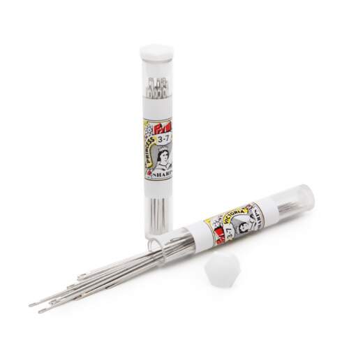 As agulhas de costura longas da nostálgica linha "Victoria" são confeccionadas em aço temperado, com olho simétrico e livre de rebarbas. Seu design inclui ponta finamente afiada e superfície revestida, proporcionando uma entrada suave por diversos tipos de tecidos. Disponíveis em um prático estojo de plástico, o conjunto inclui 25 unidades nos tamanhos 3 a 7, garantindo vantagens para diferentes costuras.
