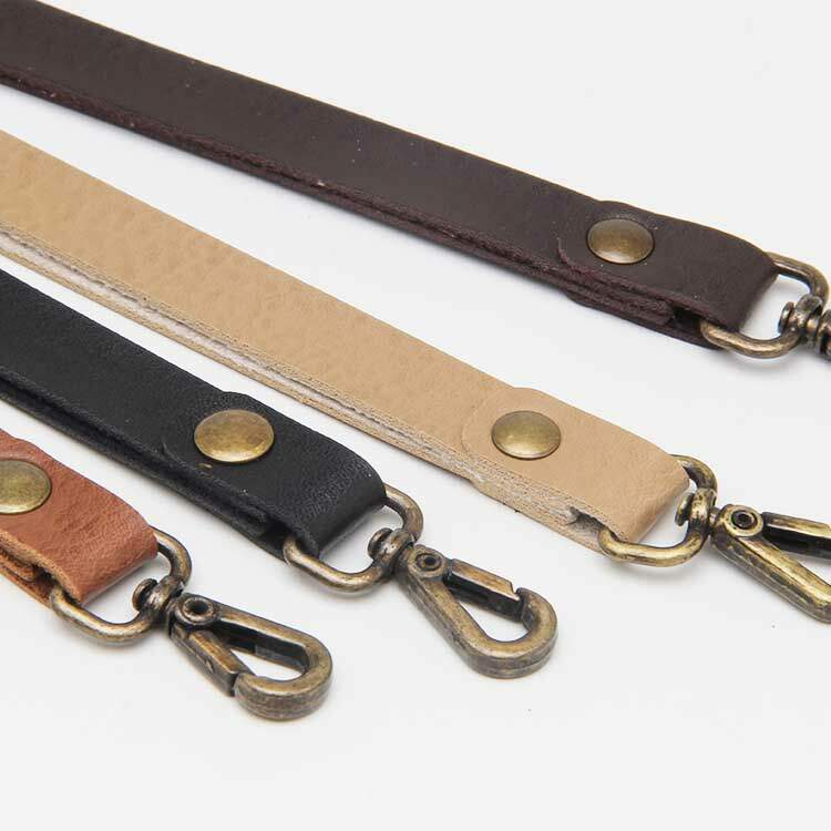 Uma alça clutch com 20 cm de comprimento x 0,12 mm de largura e um mosquetão na cor ouro velho na ponta para engatar na peça (bolsa).