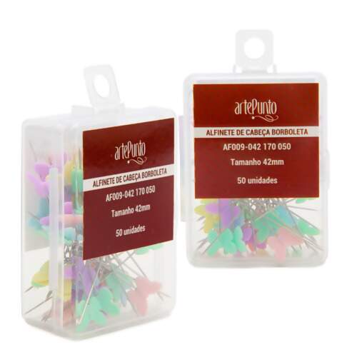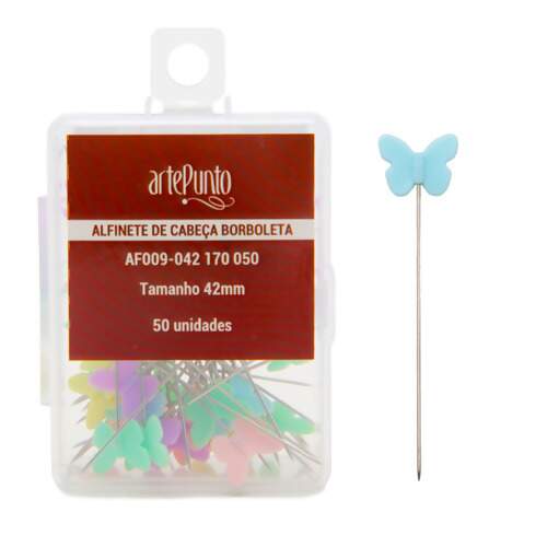 O Alfinete de Cabeça Borboleta Arte Punto é ideal para costura, patchwork e artesanato em geral. Com design colorido e cabeça em formato de borboleta, facilita a visualização durante o uso e garante mais praticidade ao manusear tecidos. Perfeito para marcar, prender e posicionar com precisão em seus projetos criativos.