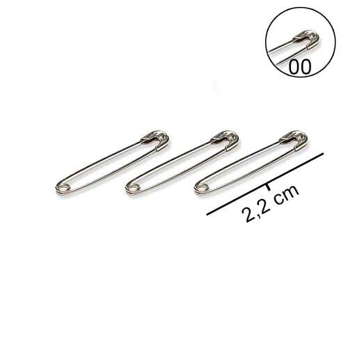 Detalhe Alfinete Segurança Niquelado nº00 importado pacote com 100 Und