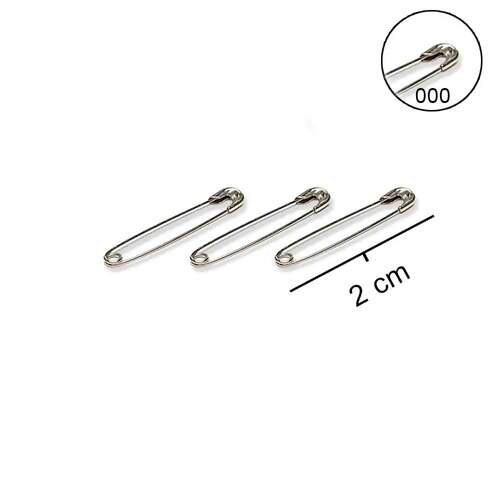 Detalhe Alfinete Segurança Niquelado nº000 importado pacote com 100 Und