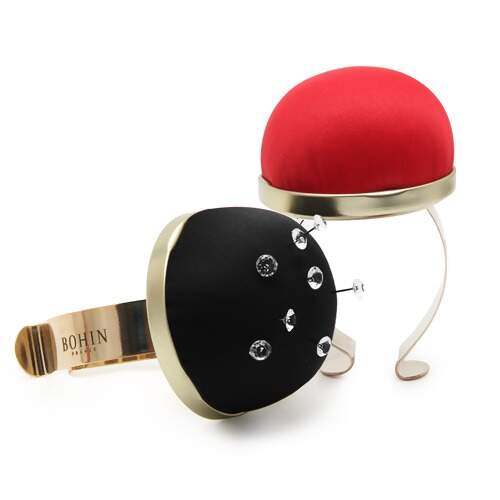 Nossa famosa pulseira dourada é um acessório histórico no mundo da alta costura. Sua almofada em forma de cúpula permite que alfinetes e agulhas sejam presos para mantê-los à mão e nunca mais perdê-los.