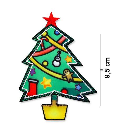 Detalhe Aplicação Termocolante Árvore Natal Decorada Patch JBT-3398 3und