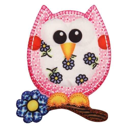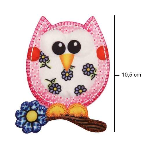 Detalhe Aplicação Termocolante Stambord Coruja Com Flor Patch JBT-7152 com 03 Und