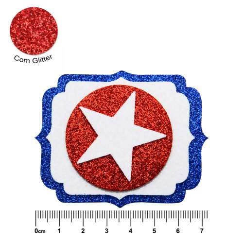 Descrição Aplique de EVA com Glitter Tag Escudo Grande Ref.T236 com 05 Und FL