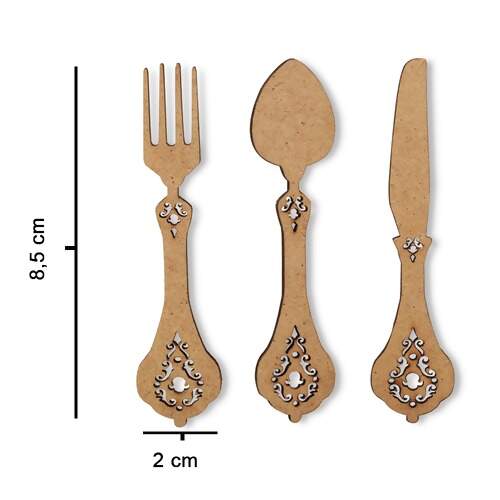 Descrição Aplique de MDF Stencil Jóia APL 741 A Talheres 2x8,5cm 1und
