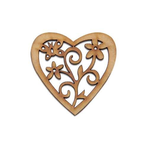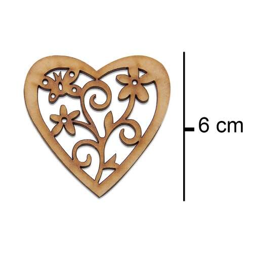 Detalhe Aplique em MDF Coração Com Flor Ref.10830 6x6cm