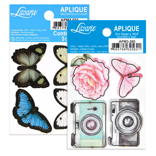 Descrição Aplique em Papel e MDF APM3 Litoarte com 4 Und
