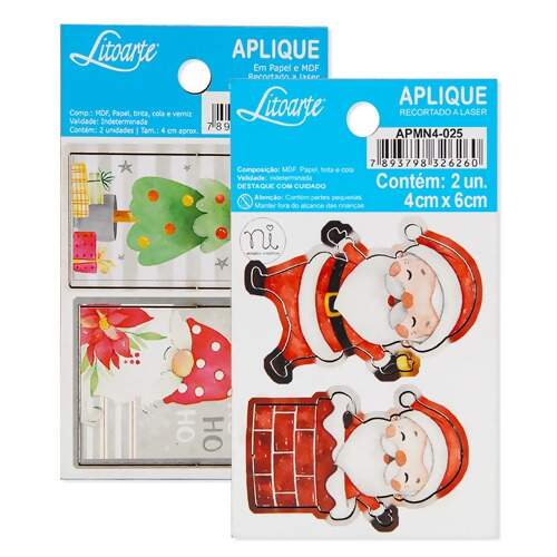 Aplique em Papel e MDF APMN4 Litoarte Natal com 2 Und
