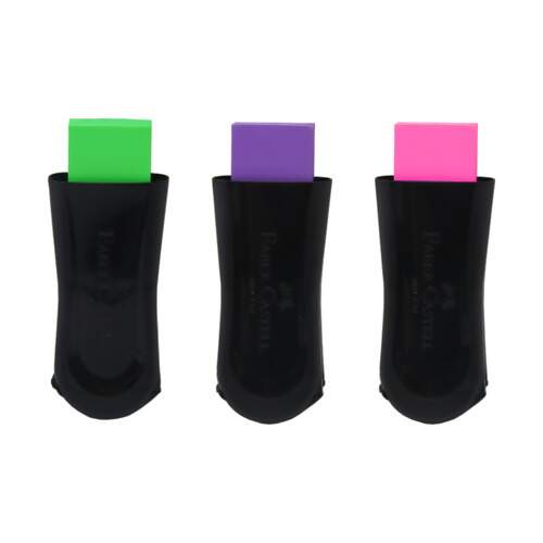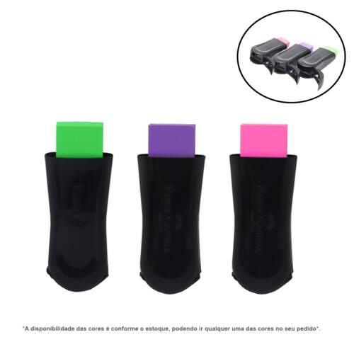 Descrição Apontador com Depósito e Borracha Faber-Castell Mix Black Neon