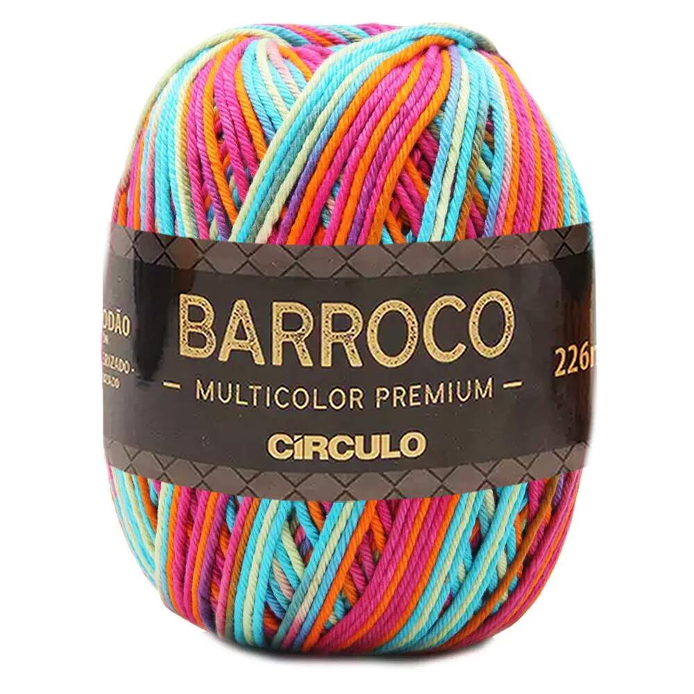 O Barbante Barroco Multicolor Premium 200g, da Círculo, é um fio 100% algodão mercerizado que se destaca pelo brilho e intensidade de suas cores mescladas. Com espessura TEX 885 e 226 metros de comprimento, é ideal para projetos de tapeçaria e decoração, conferindo um toque sofisticado e durável às peças artesanais. Recomenda-se o uso de agulhas de crochê entre 3,0mm e 4,5mm, ou de tricô entre 4,5mm e 5,5mm.