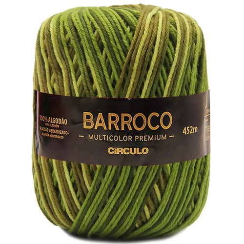 O Barbante Barroco Multicolor Premium 400g, produzido pela Círculo, é um fio 100% algodão mercerizado que se destaca pelo brilho intenso e pela riqueza de cores mescladas. Com espessura TEX 885 e 452 metros de comprimento, é especialmente indicado para projetos de tapeçaria e decoração, conferindo sofisticação e durabilidade às peças artesanais. Recomenda-se o uso de agulhas de crochê entre 3,0mm e 4,5mm, ou de tricô entre 4,5mm e 5,5mm.