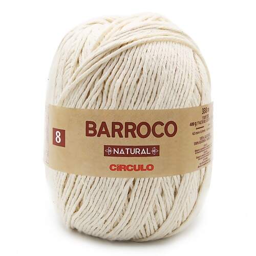 O Barbante Barroco Natural nº 8 de 400g, produzido pela Círculo, é um fio 100% algodão que se destaca pela maciez e resistência. Com espessura TEX 1181 e 338 metros de comprimento, é ideal para confeccionar peças artesanais como tapetes e acessórios de decoração. Sua tonalidade natural confere um toque rústico e elegante às criações, enquanto a qualidade do fio garante durabilidade e um acabamento impecável. Recomenda-se o uso de agulhas de crochê entre 4,5mm e 6,0mm, ou de tricô entre 6,0mm e 7,0mm.