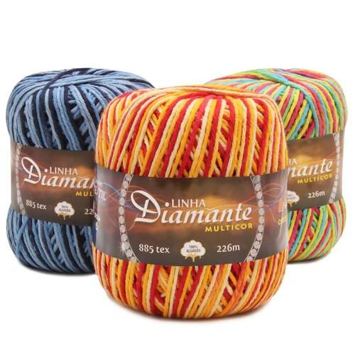 Barbante Diamante Multicor é um produto composto por 100% algodão, que garante um toque macio e alta qualidade nos seus trabalhos. Ideal para trabalhos em crochê e tricô. Uma Jóia rara em suas mãos!
