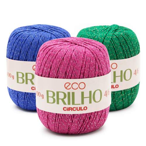O Barbante Eco Brilho Circulo 4/6 400g é a escolha ideal para artesãos que valorizam sustentabilidade e qualidade. Este barbante combina resistência e durabilidade com um toque de brilho suave pela fibra lurex.que realça qualquer projeto. Perfeito para para a produção, em crochê ou tricô, de tapetes, jogos de banheiro, jogo americano, sousplat, mantas e flores proporcionando versatilidade e beleza em cada criação. Cada novelo de 400g oferece um rendimento de aproximadamente 393 metros, garantindo ótimo custo-benefício. Barbante Eco Brilho Circulo é ...veja mais