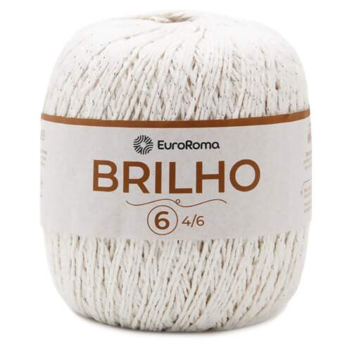 O barbante EuroRoma Brilho Cru possui base ecológica e traz em sua composição uma fita metalizada prata, que garante um toque único no artesanato.