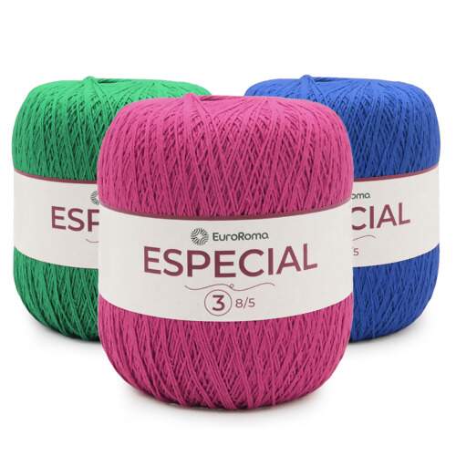 Barbante EuroRoma Especial tem como característica um fio mais leve, com toque macio e bom caimento, além de um ótimo rendimento. É indicado para peças de vestuário e decoração.