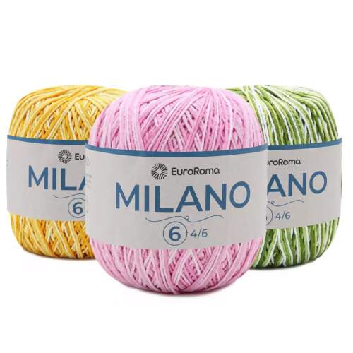 O Barbante EuroRoma Milano possui 6 fios e é um barbante mesclado ideal para diversos segmentos da decoração. Desde tapeçaria de cozinha e banheiro até a confecção de flores para aplicação em diversos trabalhos (tapetes, mantas, almofadas...).