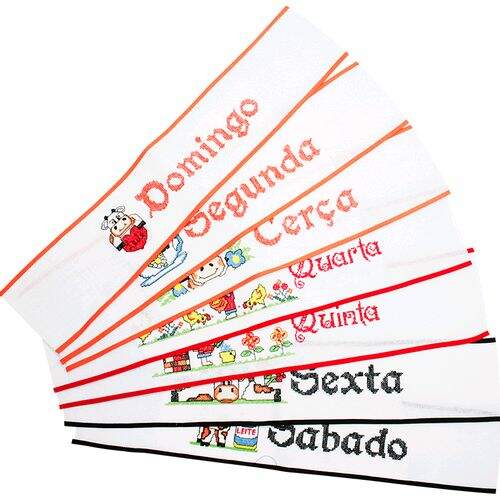Descrição Barra Bordada Pano de Prato Semaninha com Viés - 7 unidades