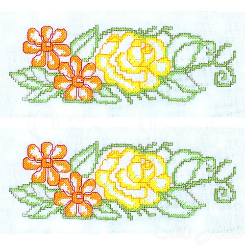 Barra Bordada Ponto Cruz Banho Marilda Ref. 67 - Pct c/02 Unidades 3635- Flor Amarela/Laranja