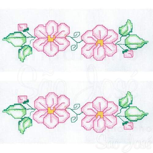 Barra Bordada Ponto Cruz Banho Marilda Ref. 67 - Pct c/02 Unidades 3649- Flor Rosa/Verm/Amarela