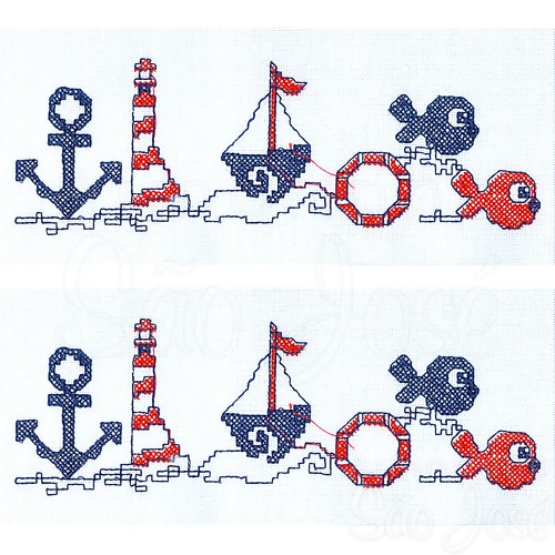 Barra Bordada Ponto Cruz Banho Marilda Ref. 67 - Pct c/02 Unidades 3656- Barquinho