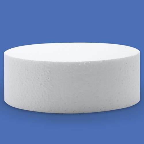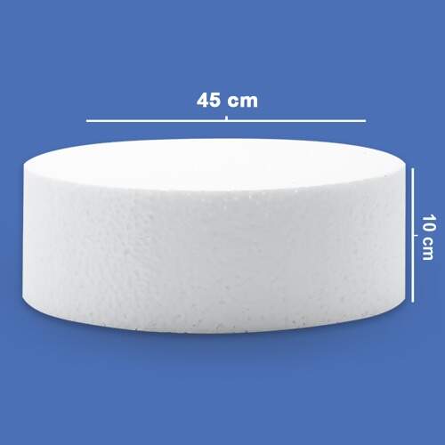 Base redonda de isopor maciça. Utilizada para fabricação de bolos falsos.