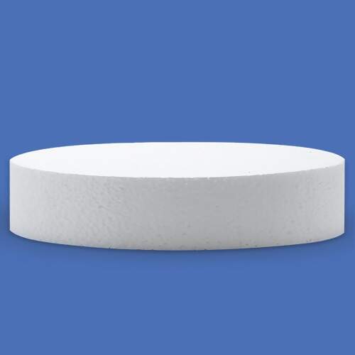 Base redonda de isopor maciça. Utilizada para fabricação de bolos falsos.