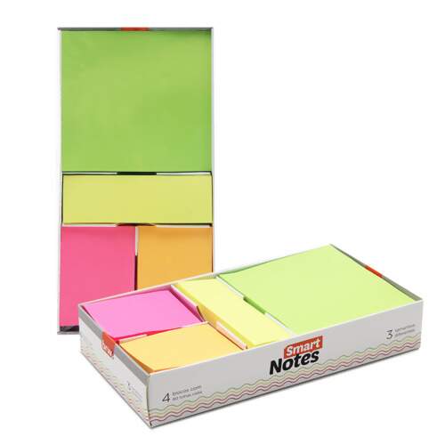 Descrição Bloco Adesivo Smart Notes Box Neon Presente com 4 Blocos