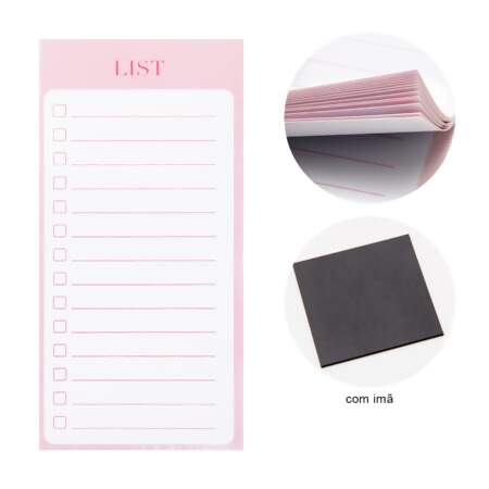 Ideal para anotar recados, facilitando a anotação de compromissos e tarefas do dia a dia, Possui Imã podendo se fixar em geladeira, quadros e outras superfícies metálicas.