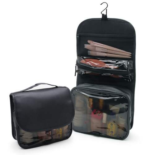 Descrição Bolsa Necessaire Multifuncional de Viagem com Divisórias e Gancho