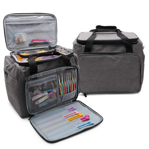 A Bolsa para Fios Grandes de Tricô e Crochê na cor cinza é uma solução específica e elegante para armazenar e transportar grandes quantidades de fios em projetos de tricô e crochê. Com amplo espaço interno, é ideal para manter os fios, agulhas e acessórios organizados e protegidos. Seu design cinza confere um toque moderno, enquanto a praticidade do fechamento seguro torna essa bolsa uma escolha funcional.