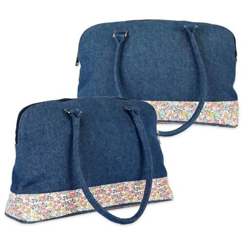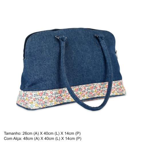 Feita de jeans e algodão estampado floral com forro interno de camurça.