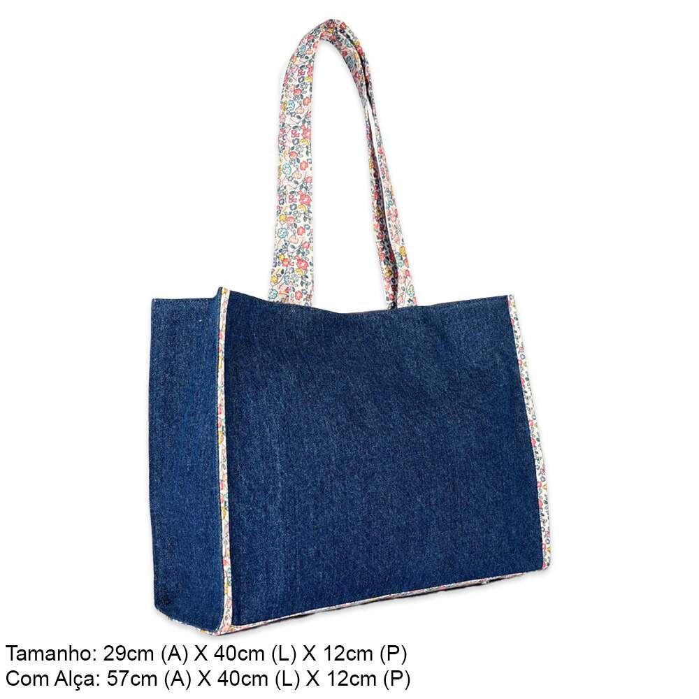 Feita de jeans e algodão estampado floral com forro interno de camurça.