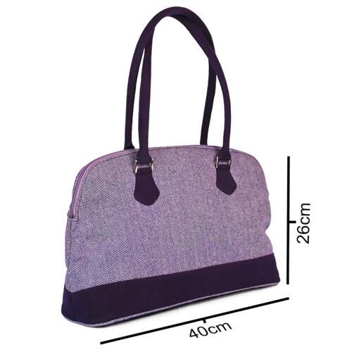 Esta bolsa é feita de tweed de lã premium e feltro com forro interno de camurça.