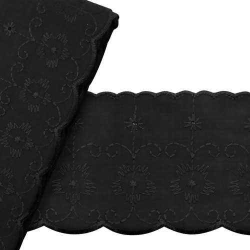 Bordado Inglês Arte Punto Ref.018 7,5cm Cores - 13,7mt 016- Preto FL