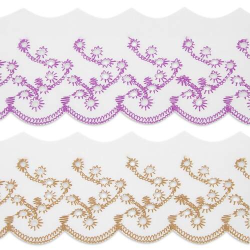 Descrição Bordado Inglês Arte Punto Ref.087 7,5cm Branco-Cores 13,7mts