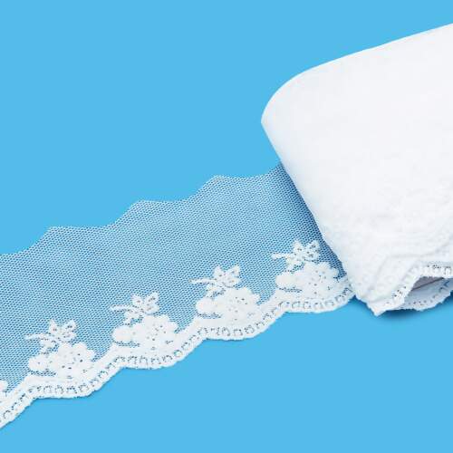 Descrição Bordado Inglês Arte Punto Tule BT-020 5,5cm Branco 13,7mts