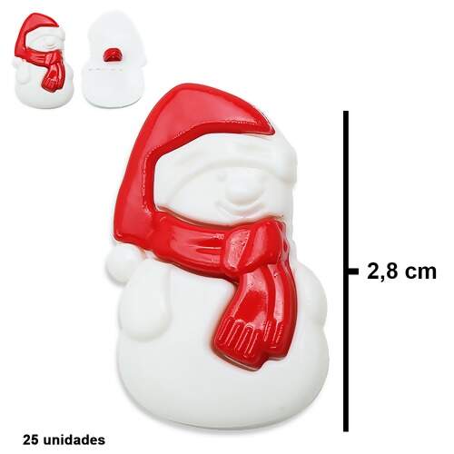 Descrição Botão Infantil KR Natal 6155 Boneco de Neve Branco/Vermelho com 25 Und