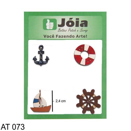 Detalhe Botão MDF Patchwork Ref 073 Barco /Ancora - Jóia FL